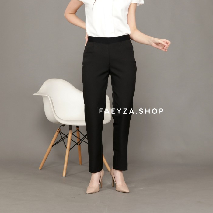 CELANA KERJA WANITA CELLIA PINGGANG KARET S M L XL XXL JUMBO 4L 5L 6L - HITAM, S