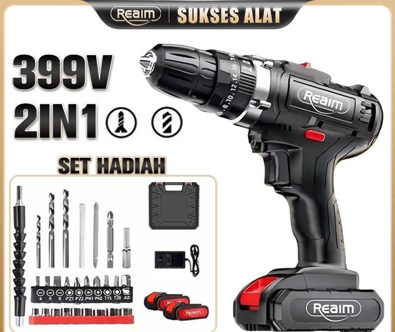 REAIM 399V Bor listrik 2IN1 Bor Baterai Cas Bor Portable Baterai Impact Bor Listrik Set