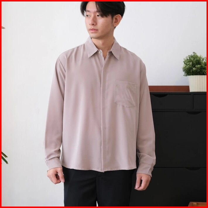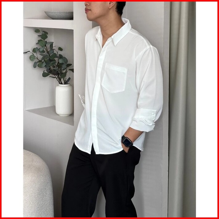 Relaxed Oversized Loose Shirt Kemeja Polos Pria Lengan Panjang