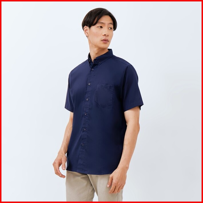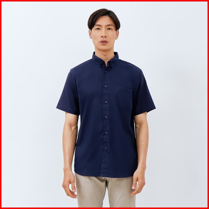 M231 Kemeja Pria Basic Polos Oxford Pendek Navy 1457g