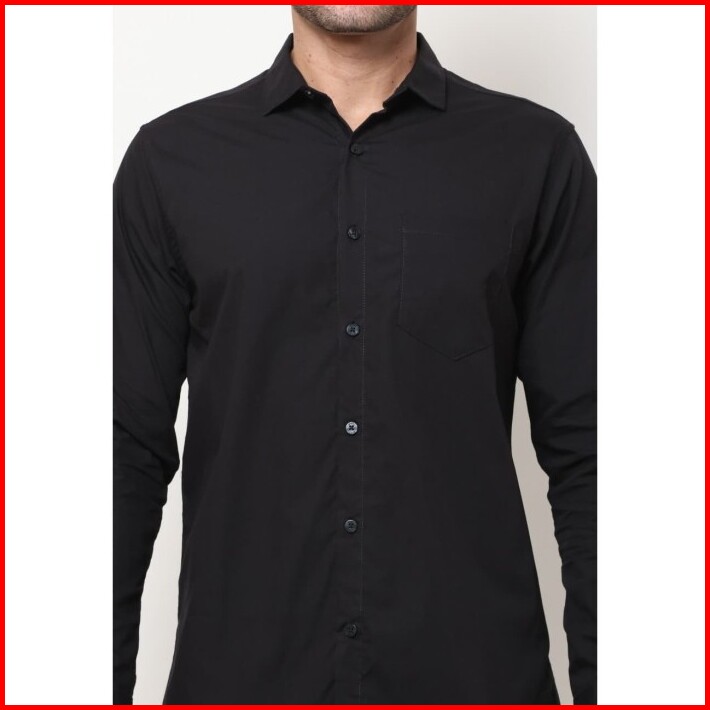 M231 Kemeja Pria Basic Polos Warna Hitam 1468d