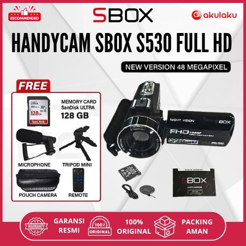 PROMO Handycam SBox S530 Full HD 48.0MP Hitam (Resmi) FREE Mic Vlog Bisa Webcam KAMERA DSLR CANON SONY FUJI