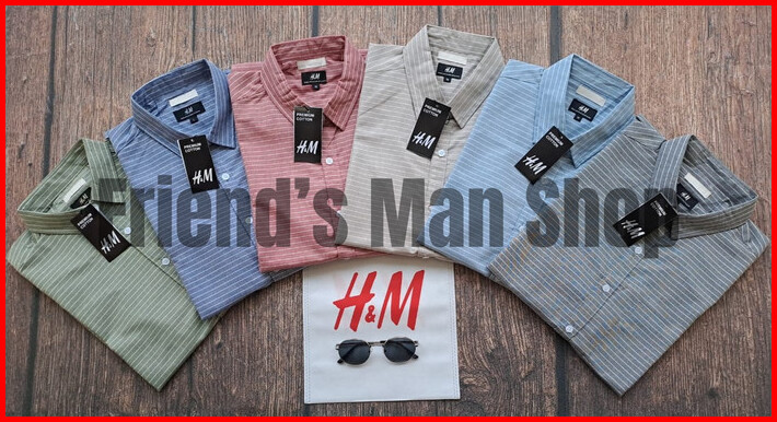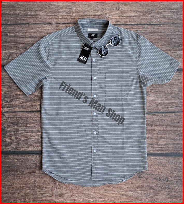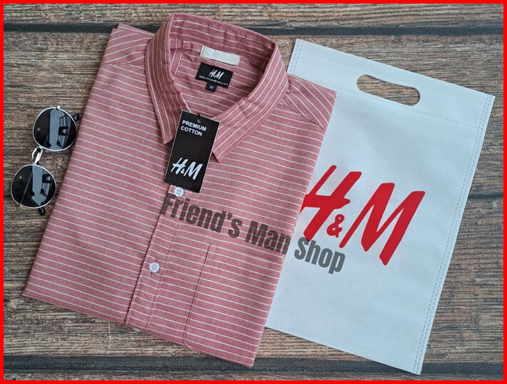 Kemeja H M Pria Full Kancing Kemeja Pria Motif Garis Salur Kemeja Pria Catton Oxford Lengan Pendek