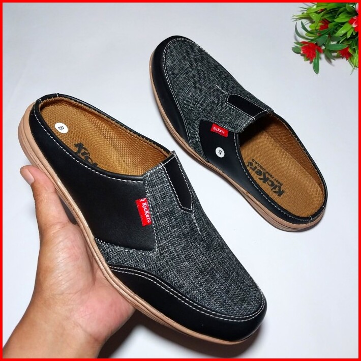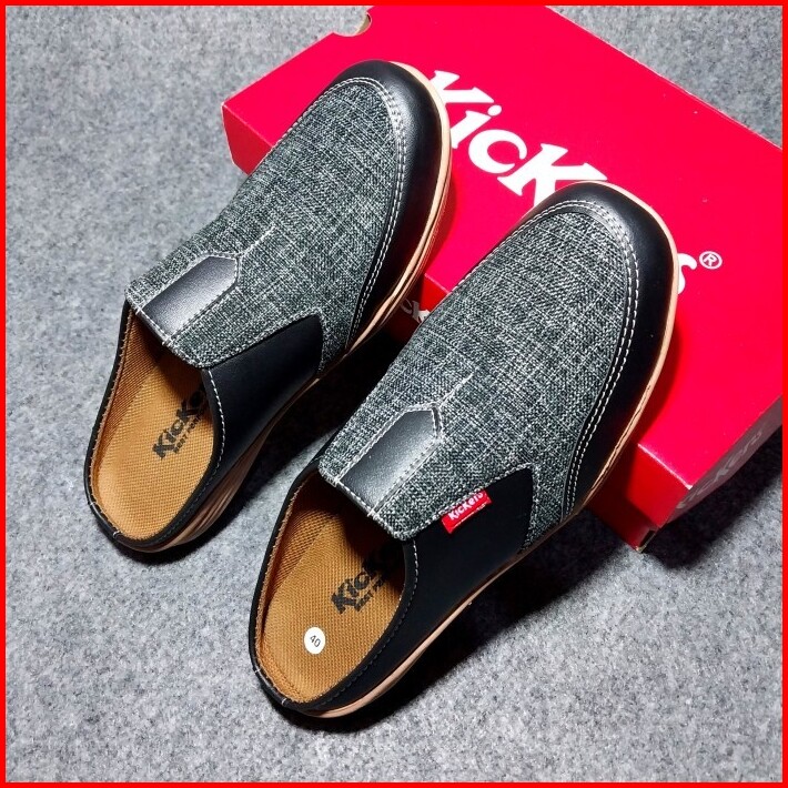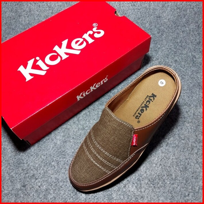 Sepatu Casual Kickers Slop Bustong Sepatu Sandal Pria Bahan Canvas Dan Kulit