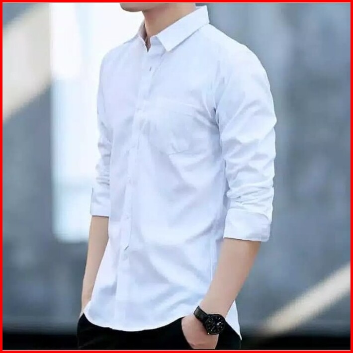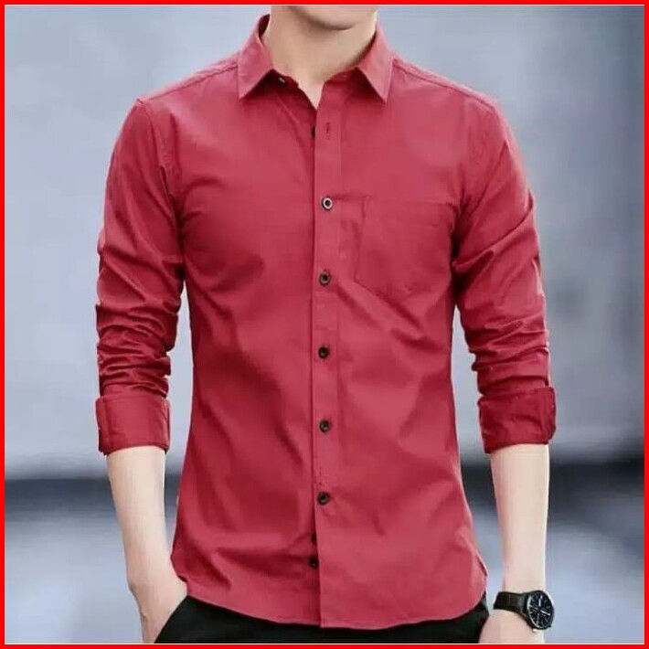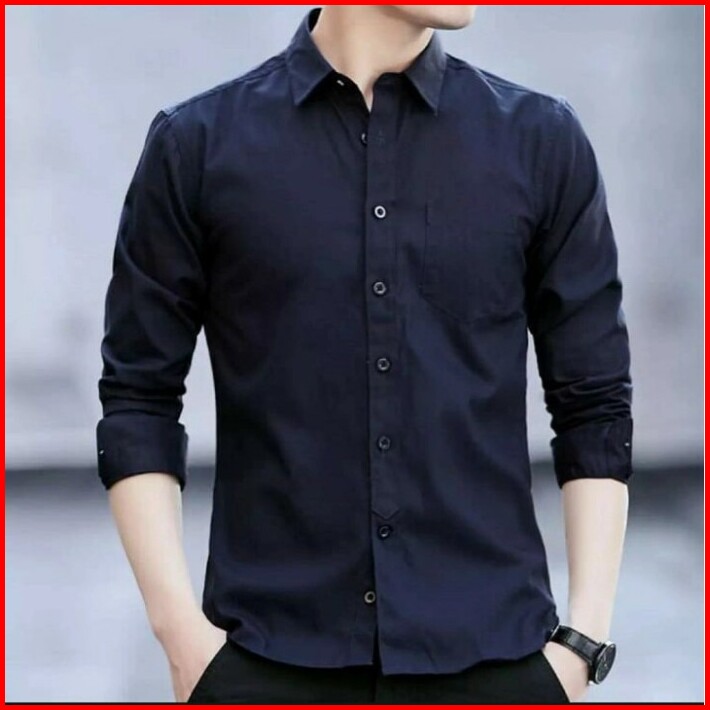 Kemeja Pria Baju Pria Lengan Panjang Slimfit Polos Warna Hitam