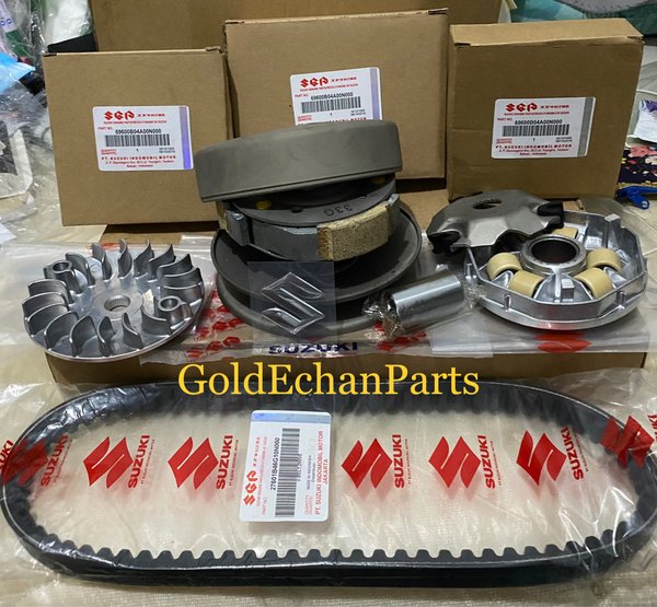 Paket CVT Pulley Pully Assy + Kipas & Rumah Roller Assy Set+Vanbelt Spin Skywave Skydrive Hayate