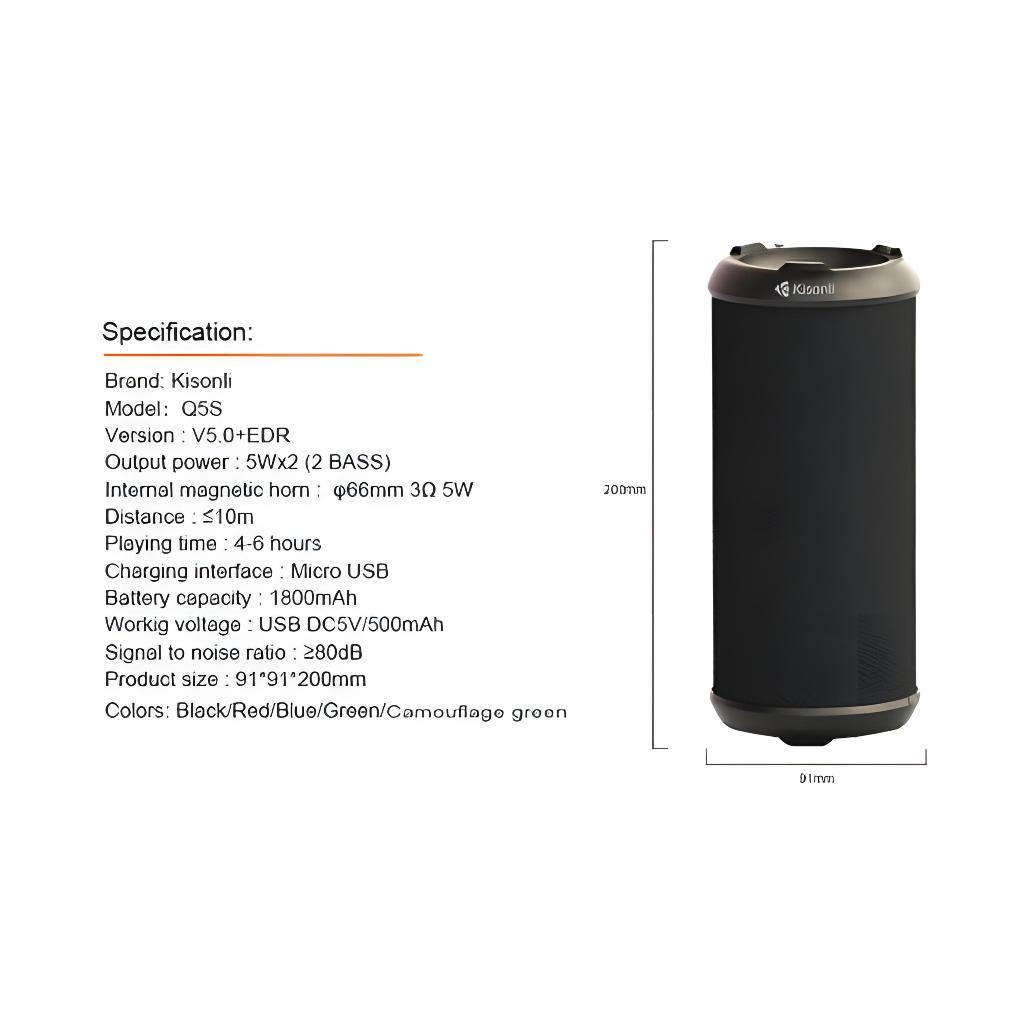 Speaker Bluetooth Portable KISONLI Q5S Dual Bass Support FM Radio TF AUX
