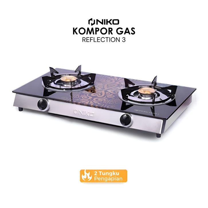 NIKO REFLECTION 3 KOMPOR GAS 2 TUNGKU GLASS GAS STOVE REFLECTION SERIES ORIGINAL GARANSI RESMI