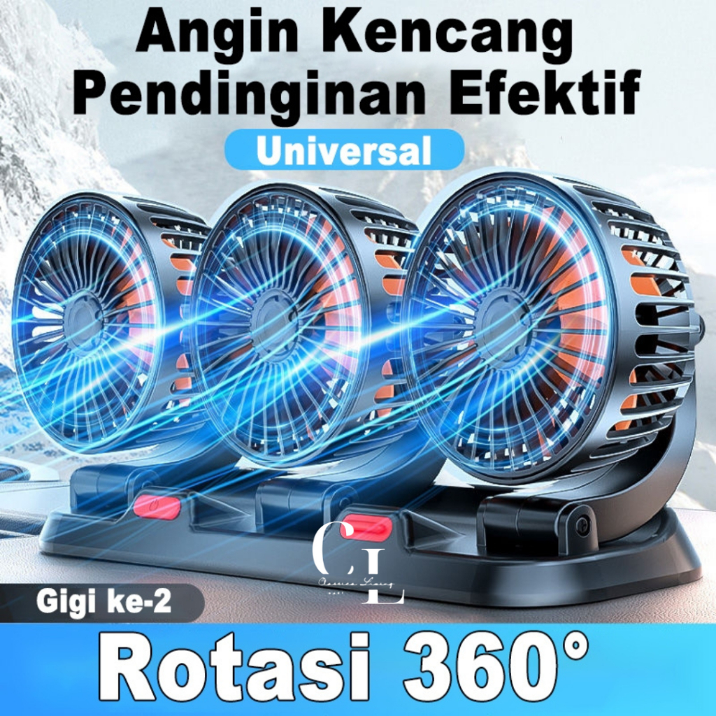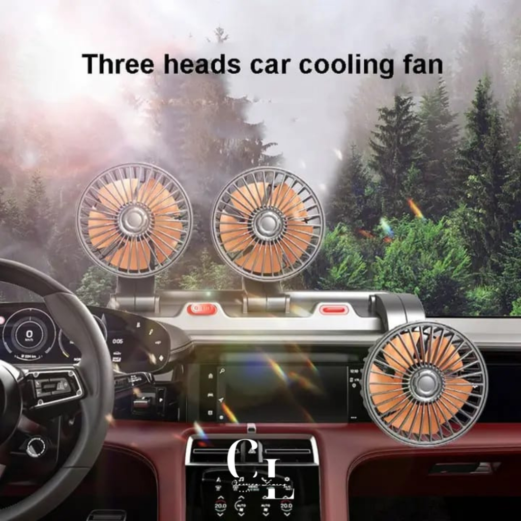 CLM Kipas Angin Mobil 3 Kepala 12/24V Kipas Pendingin Truck USB Dashboard Rotasi 360 Fan Car Cooling