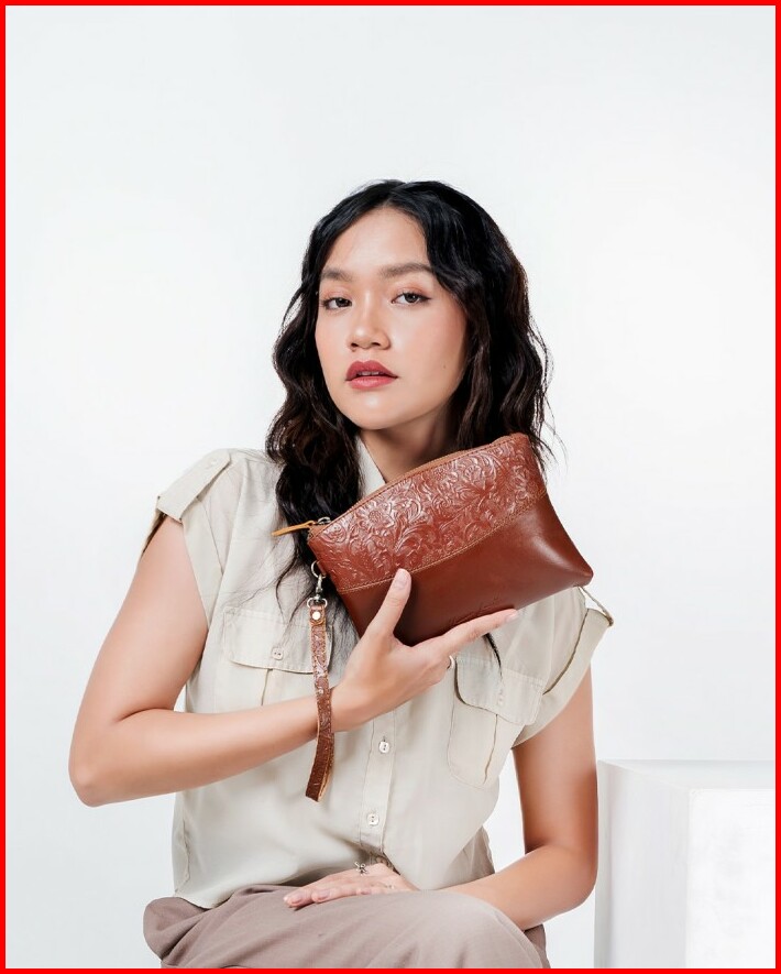 Clutch Pouch Tas Tangan Wanita Kulit Asli Kenes Leather Haruka Harumi