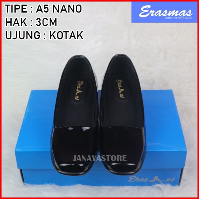 Sepatu Pdh Polwan Kowad A5 Erasmas Pns Hak Kotak 3cm Sepatu Formal Wanita Sepatu Pantofel Wanita