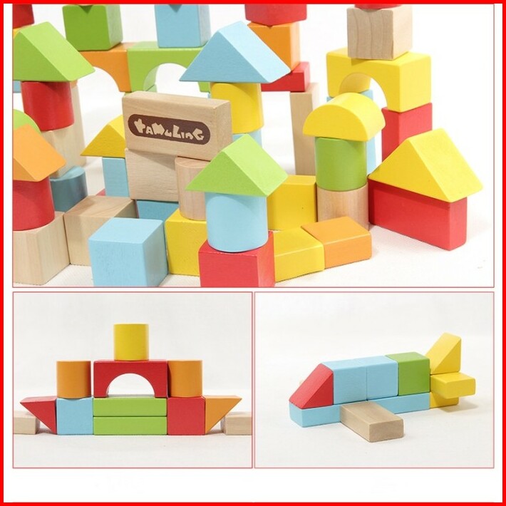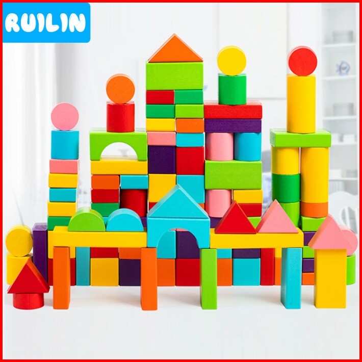 Ruilin Balok Susun Kayu 100pcs Mainan Anak Edukasi Wooden Block