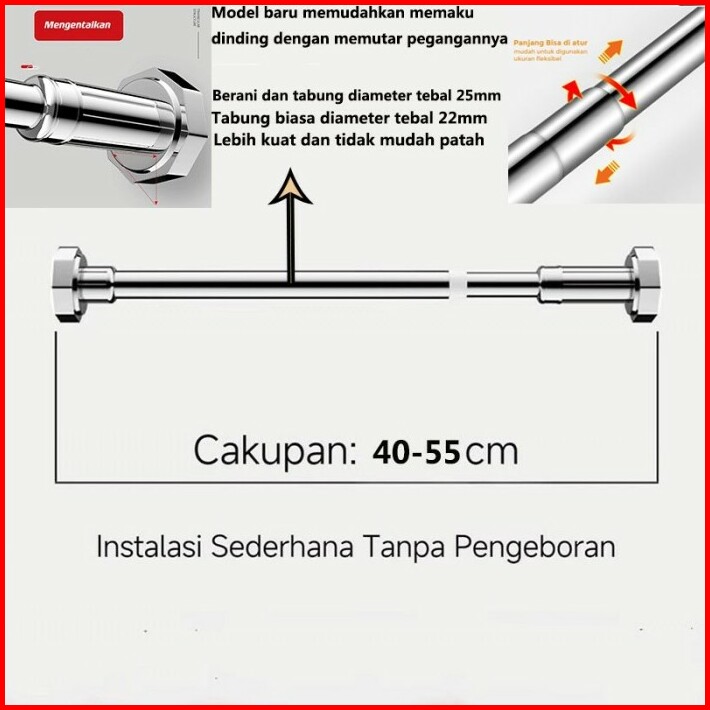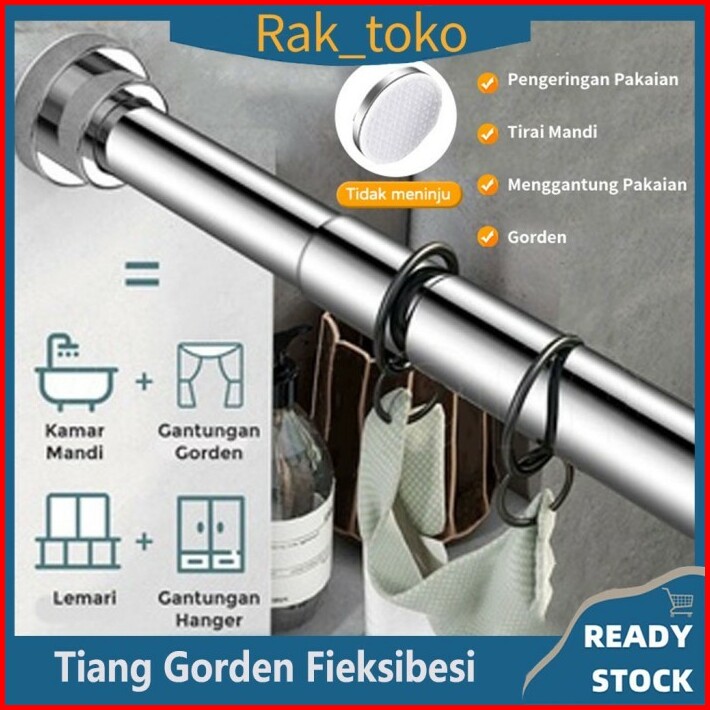 Tiang Gorden Batang Tirai Fleksible Tanpa Paku Gantungan Serbaguna