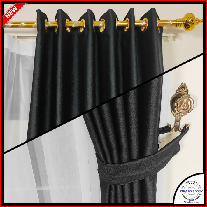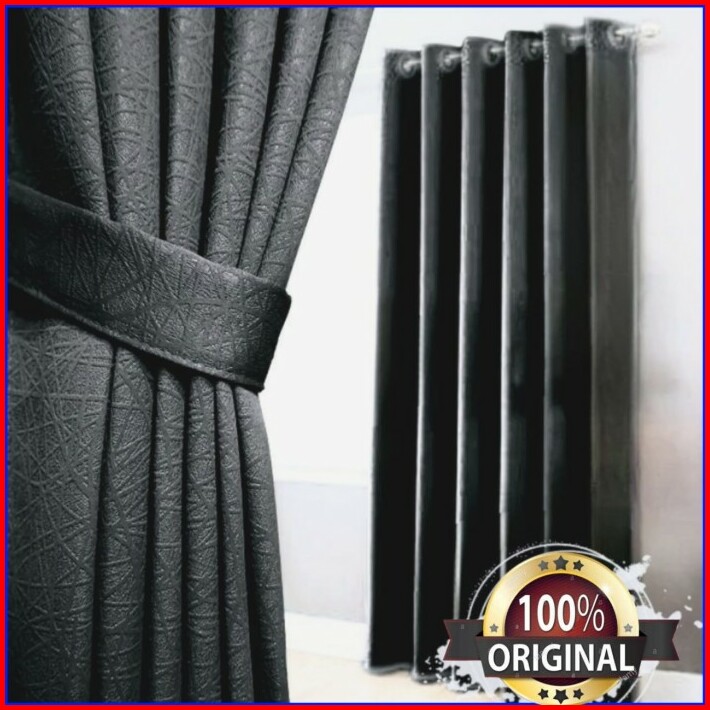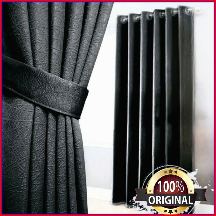 Gorden Blackout Polos Serat Warna Hitam 6 Gelembung 140x200cm