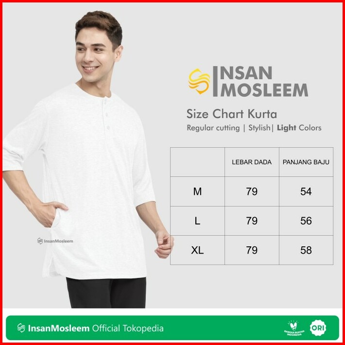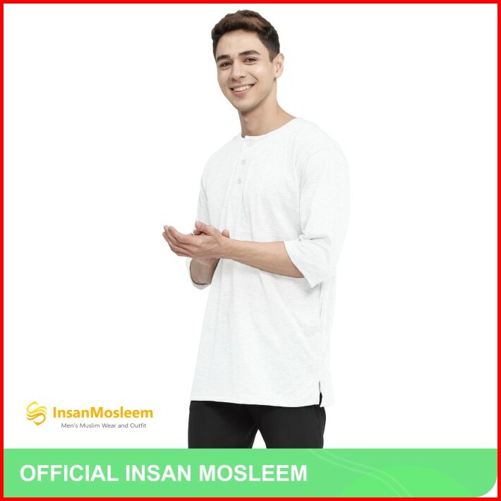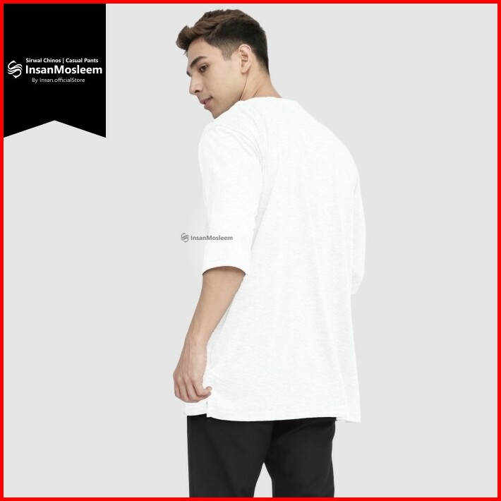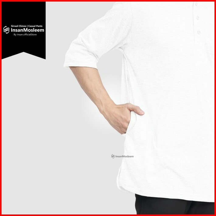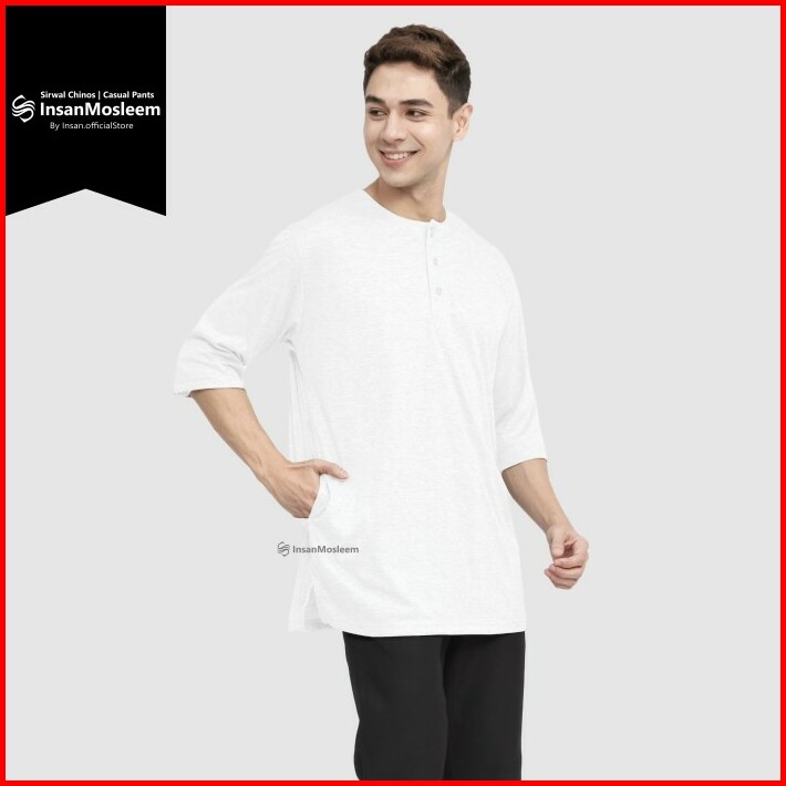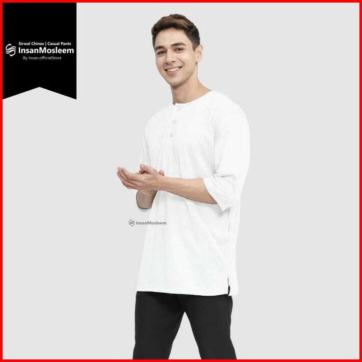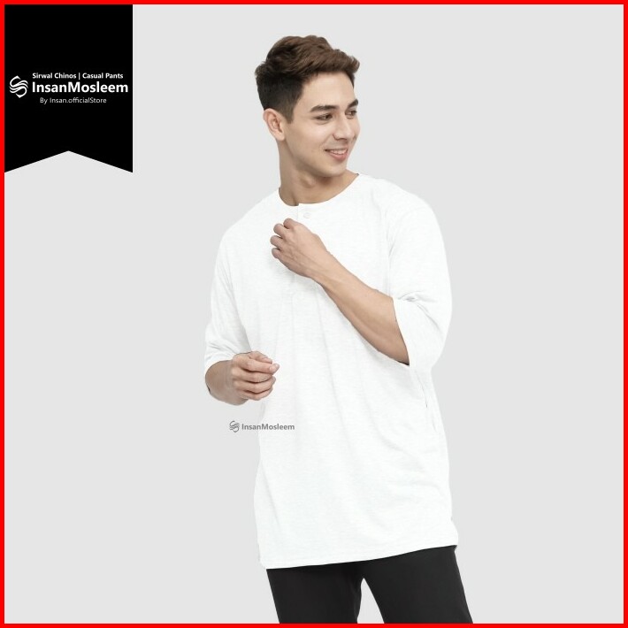 Baju Kurta Putih Polos Kaos Kurta Bahan Tebal Pria Lengan 3 4 Adem