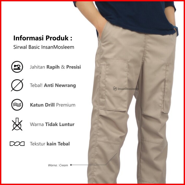 Celana Taktikal Sirwal Cargo Outdoor Pria Dewasa Insan Mosleem