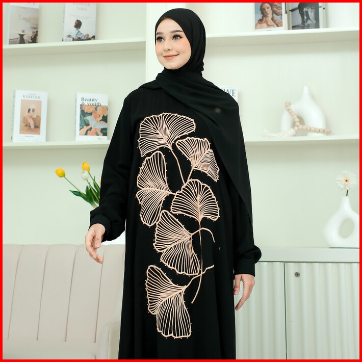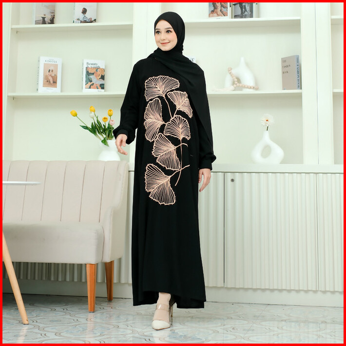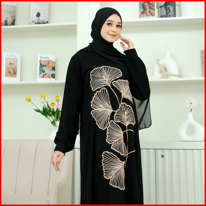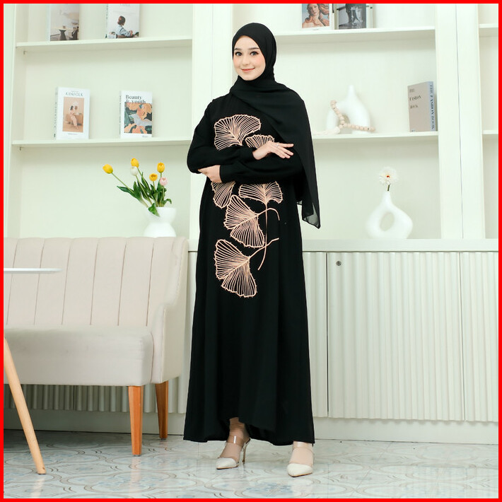 Jubah Gamis Abaya Arab Hitam Simple Terlaris Termurah Full Ziper
