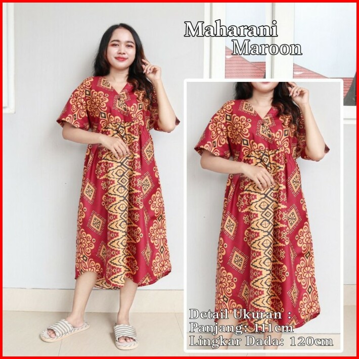 Daster Jumbo Wanita Dress Hem Tali Ld 122 Cm Motif