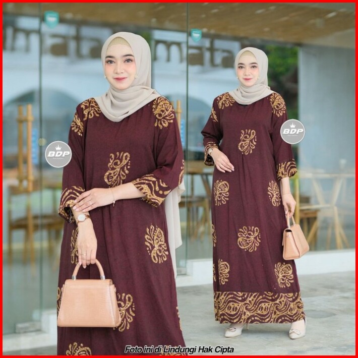 Daster Dres Maura Batik Cap Rayon Grade A Busui Wanita Lengan Panjang