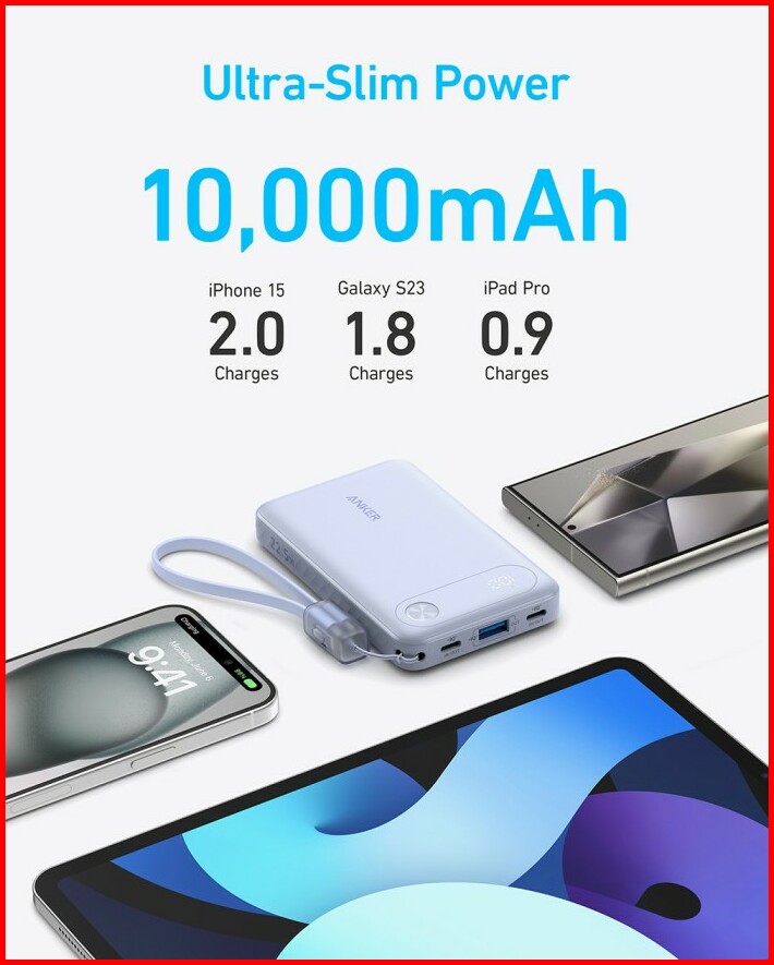 Mini Powerbank Anker 10.000 Mah Fast Charging 22 5w Pd With Usb-c Cable
