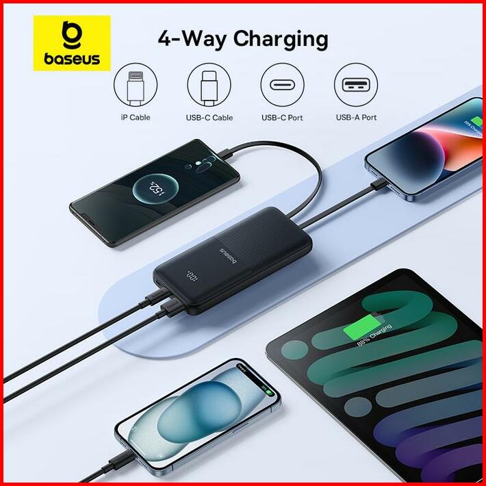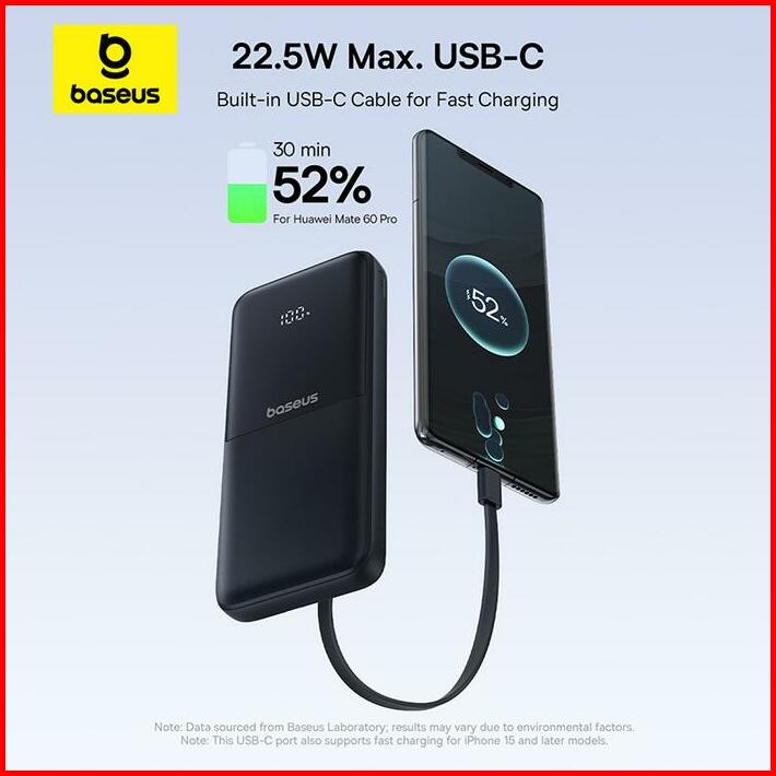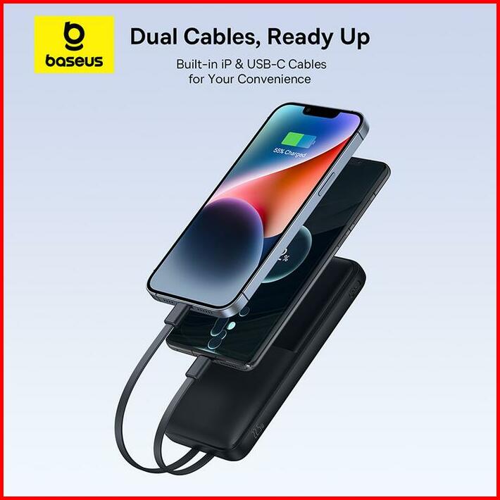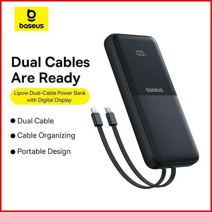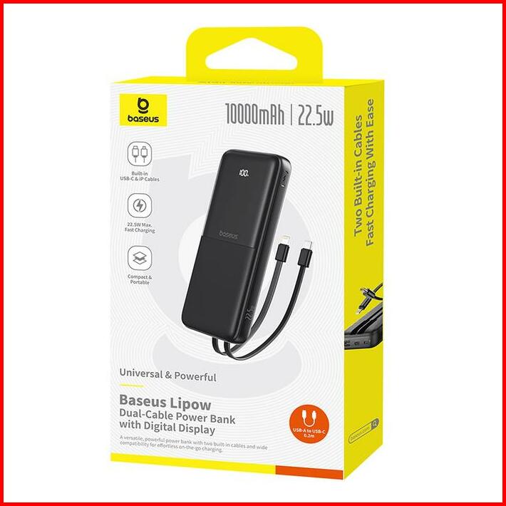 Baseus Lipow Dual-cable Power Bank With Digital Display 10000mah 20000mah 22.5w Lcd Powerbank Baterai Charger