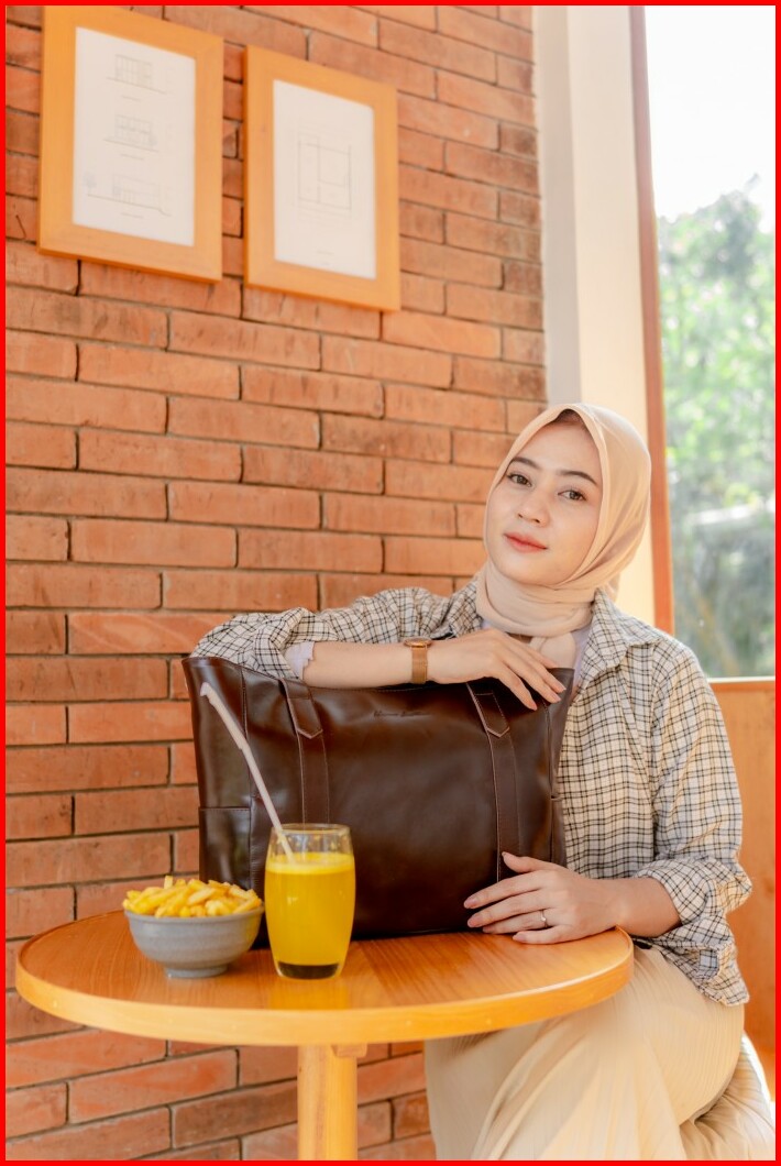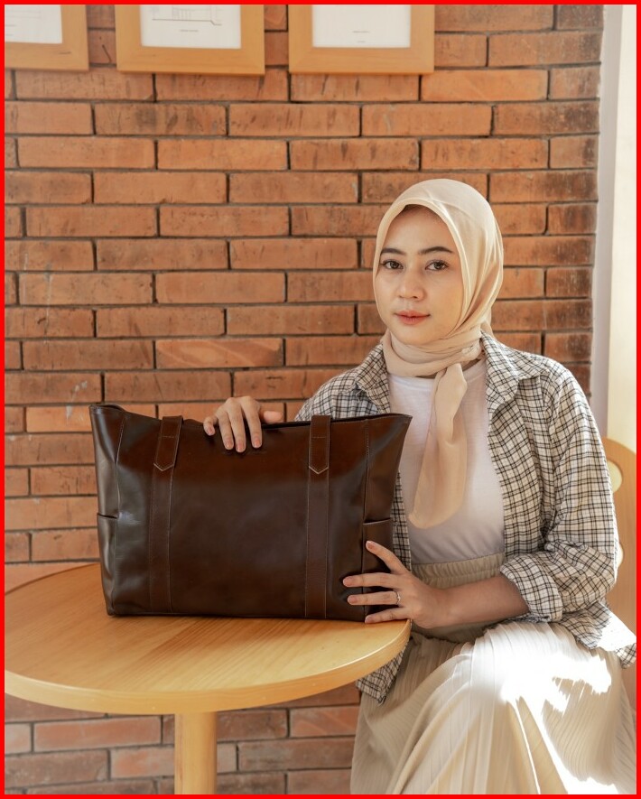 Kenes Leather Tote Bag Wanita Tas Selempang Kulit Asli Aurantie Pullup