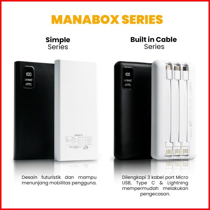 Uneed Powerbank Manabox 10000 20000 30000mah Quick Charge 3.0 Pd22.5w