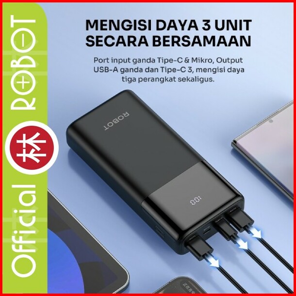 Robot Rt22s Powerbank Fast Charging 20000mah 15w 3 Port Output With Led New Rt22