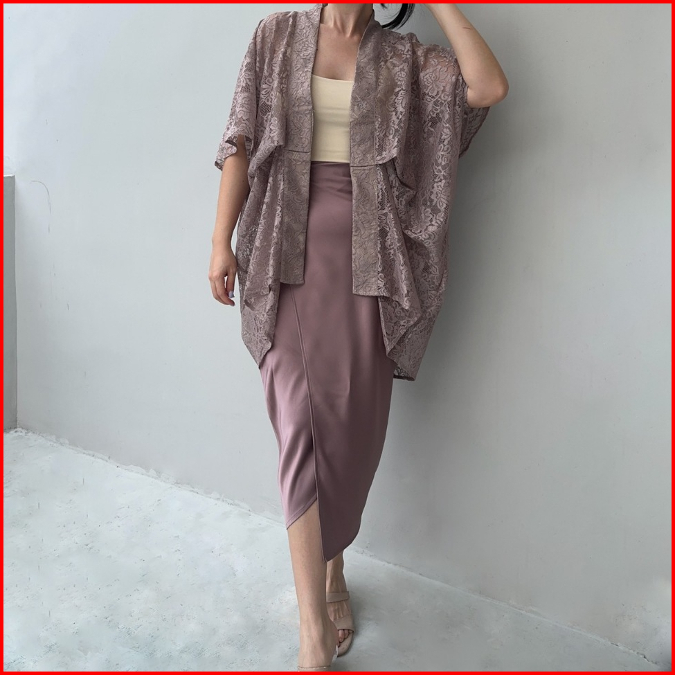 Zalima Karla Kebaya Modern Kaftan Set With Silk Satin Midi Skirt Baju Pesta Set Formal Baju Kasual Set Wanita Set Muslim