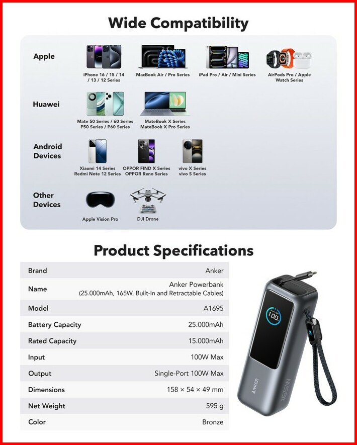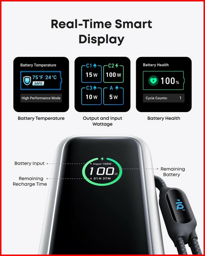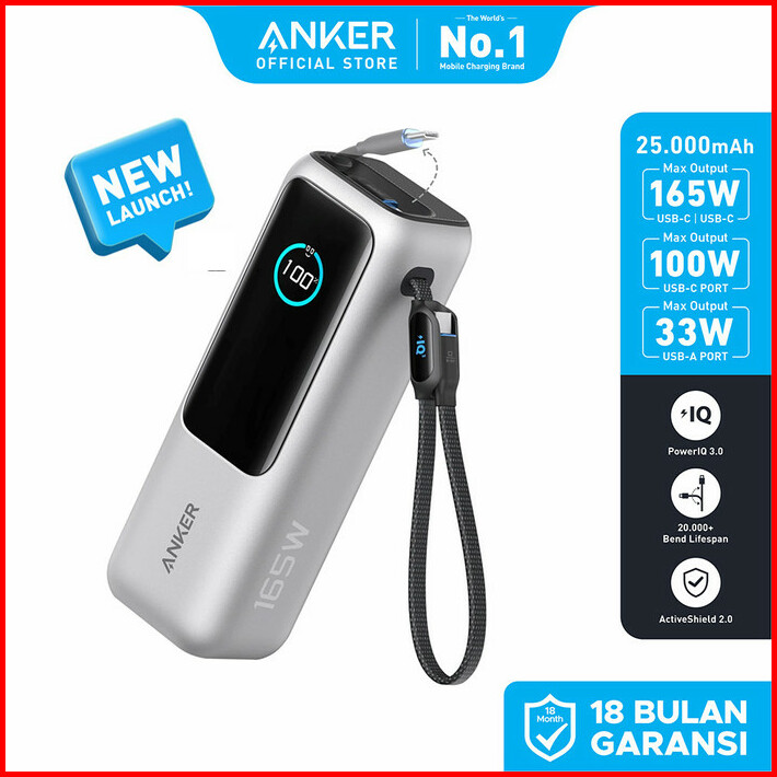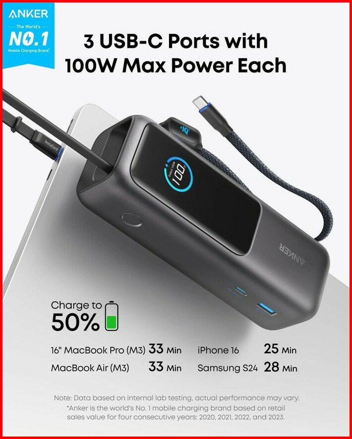 Anker Laptop Power Bank Smart Digital Display Touch 25.000mah Triple 100w Usb-c Ports 165w Gan Fast Charging Pps Pd 3.0