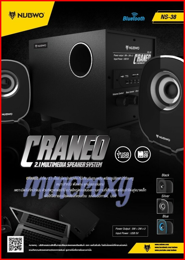 Nubwo Ns-38 Craneo Speaker Bluetooth Subwoofer 2.1 Usb Sd Mmc Aux