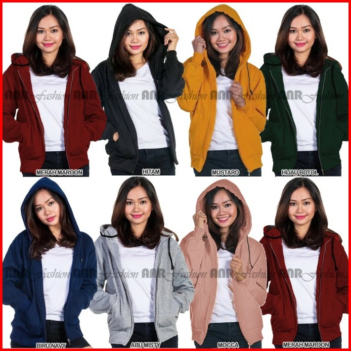 Jaket Sweater Hoodie Zipper Polos Wanita Murah Berkualitas Promo