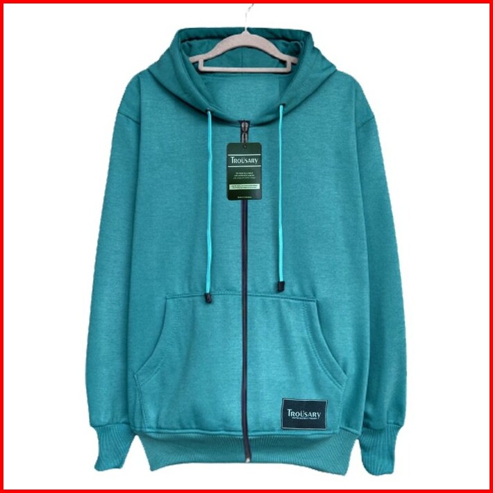 Jaket Sweater Zipper Hoodie Pria Wanita Polos Resleting Hijau Mint S