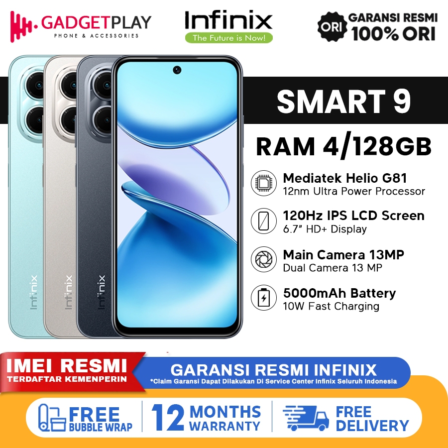 ORI Infinix Smart 9 120hz [3gb+64gb] [4gb+128gb] - Garansi Resmi 1 Tahun Terbaru 2025