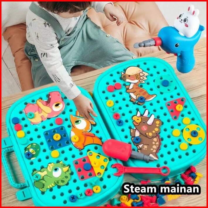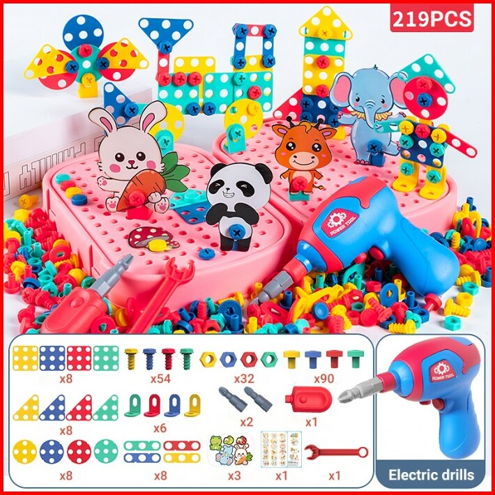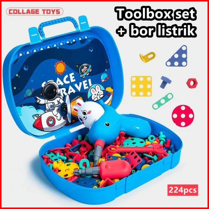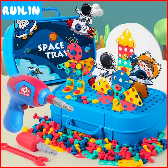 Ruilin Mainan Bor Listrik Obeng Set Mainan Edukasi Anak Tool Set 224pc