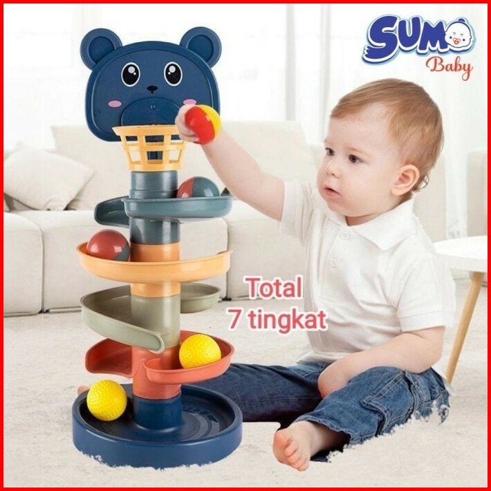Mainan Edukasi Anak Bayi Puzzle Rolling Ball Rotating Seluncuran Bola