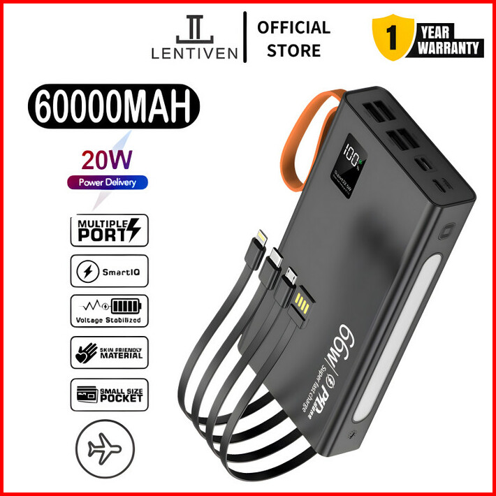 Lentiven Powerbank 60000mah 4 Usb Fast Charging Led Display W66