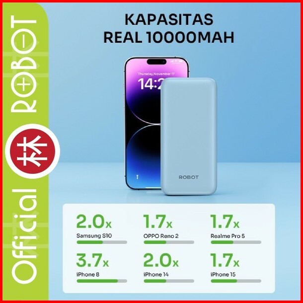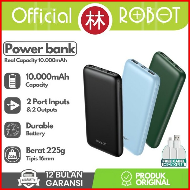Robot Rt12 Powerbank 10000 Mah Type C Micro Usb Slim Dual Input Output