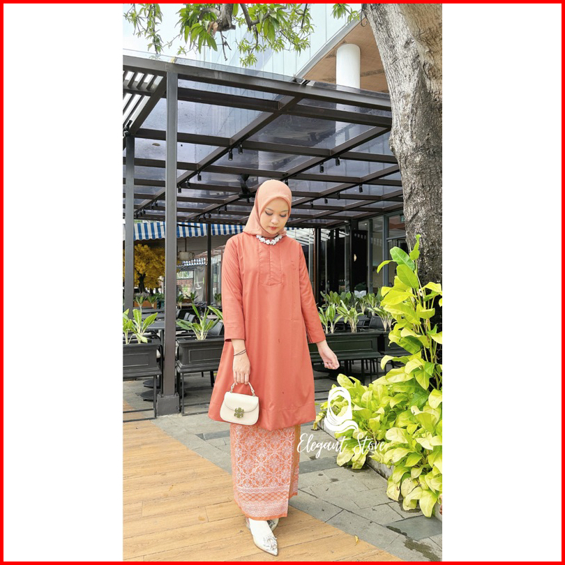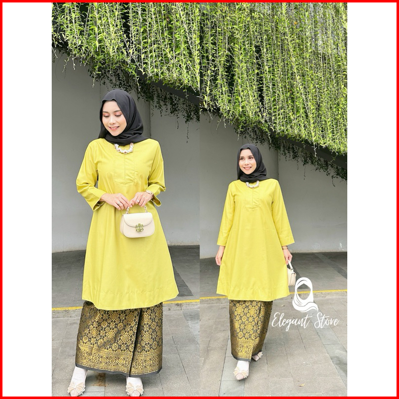 Oneset Tunik Toyobo Polos Stelan Baju Melayu Busui Tunik Polos Ima Toyobo Set Tunik Rok Songket