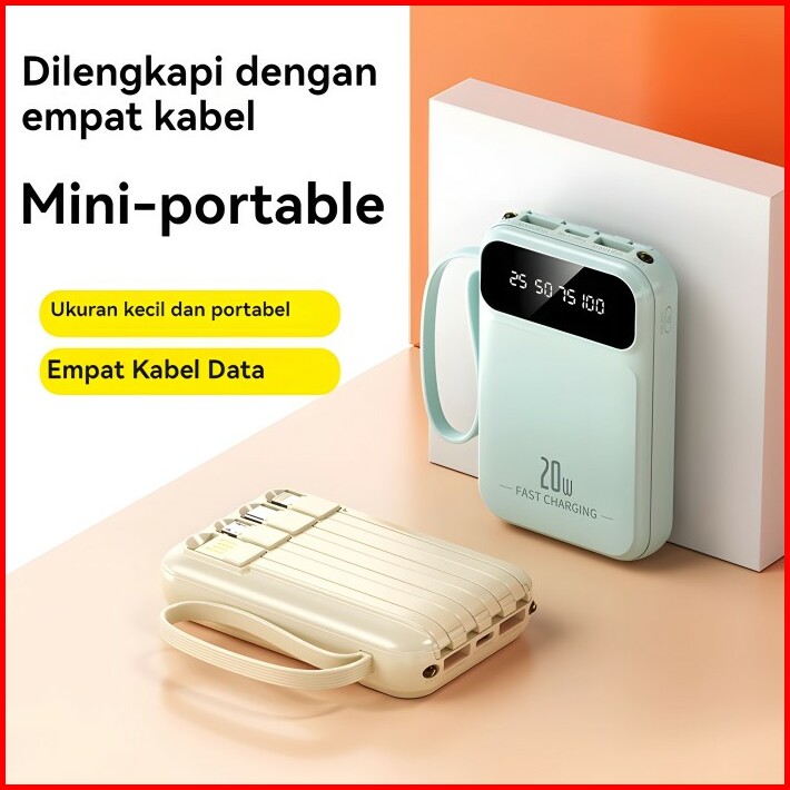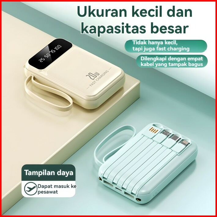 Lentiven Powerbank 20000mah Mini With 4 Usb Fast Charging Led Senter