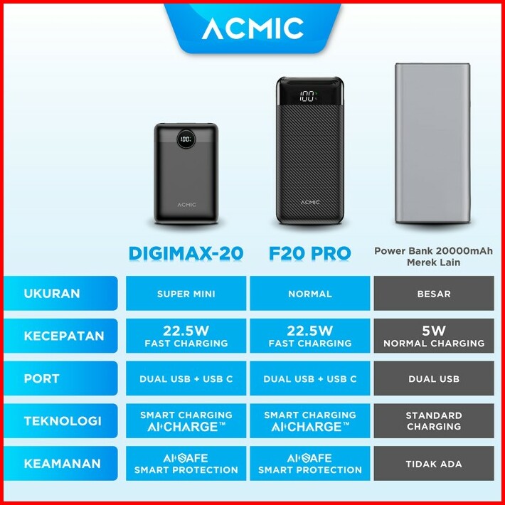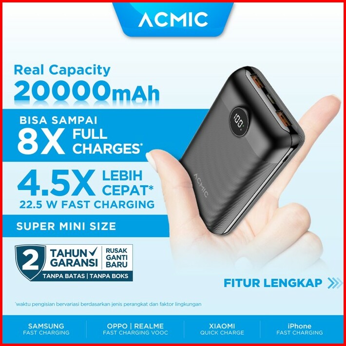 Acmic Digimax 20000mah Powerbank Mini 22.5 Watt Fast Charging Type C