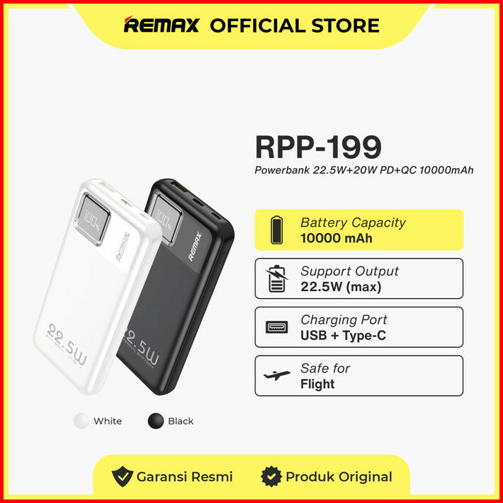 Remax Powerbank Pd Qc 22 5w 10000mah Digital Display Rpp-199