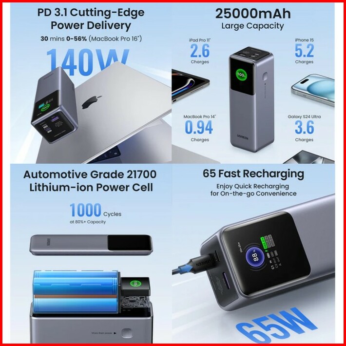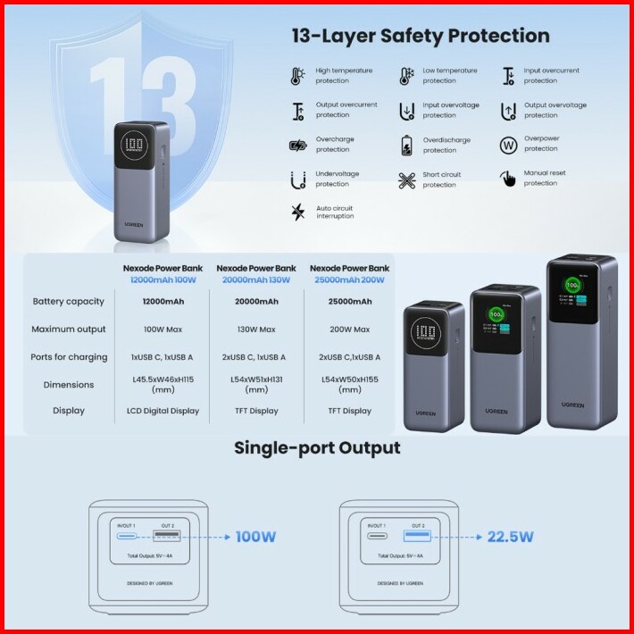 Ugreen Power Bank Nexode Smart Digital Display 12.000mah 20.000mah 25.000mah Fast Charging 100w-200w