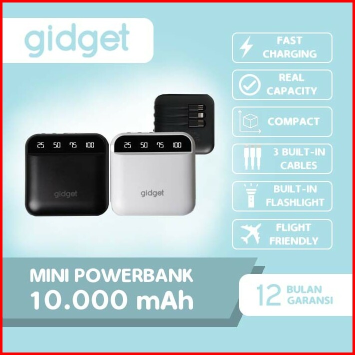 Gidget Mini Powerbank 10000mah Real Capacity 3 Built-in Cable