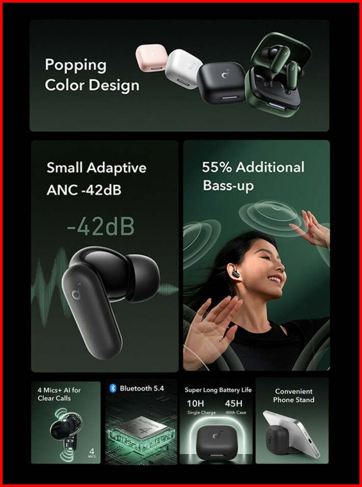 New Launch Soundcore Anker R50i Nc Earbuds Adaptive Noise Canceling Headset Earphone Bluetooth 5.4 Tws Low Latency For G