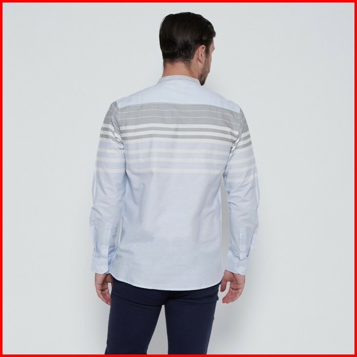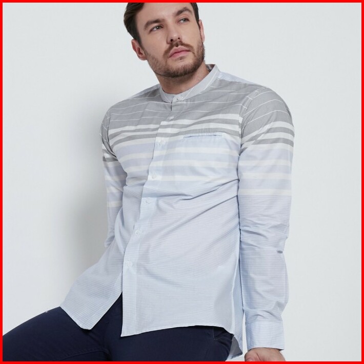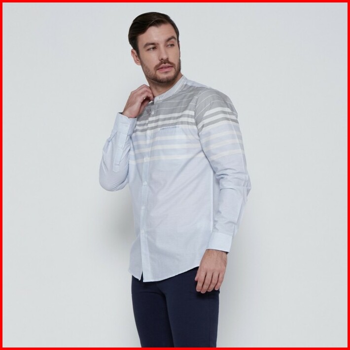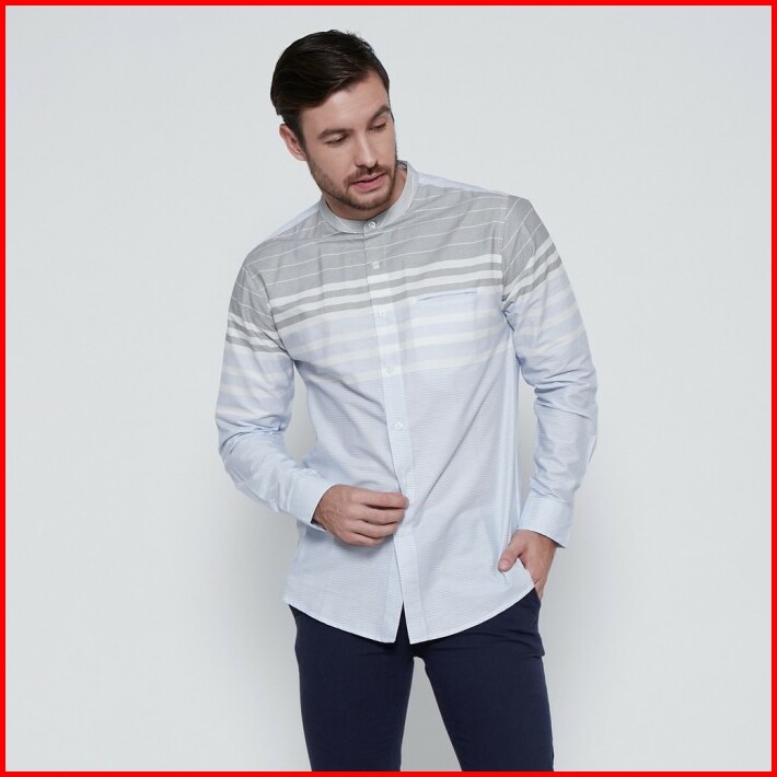M231 Kemeja Pria Shanghai Salur Stripe Panjang Warna Biru Muda 1712a