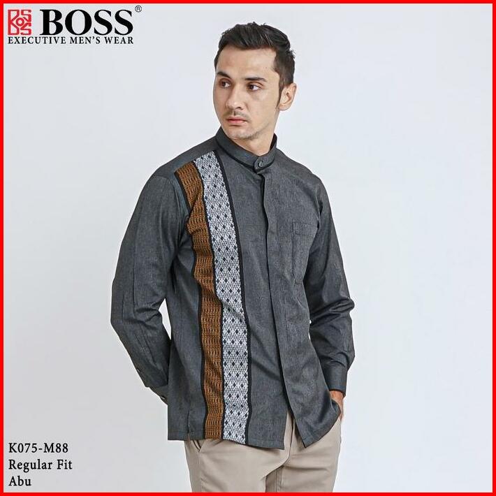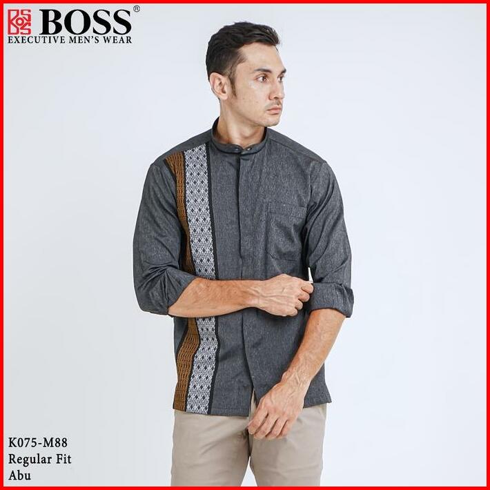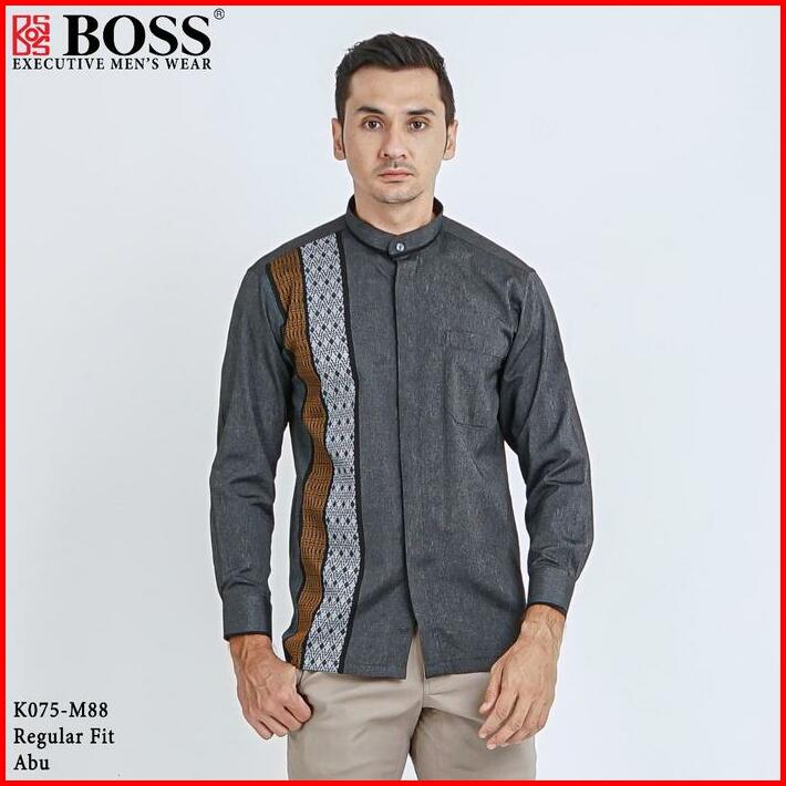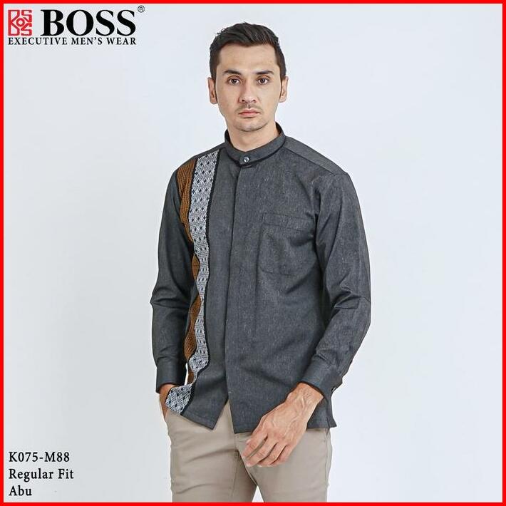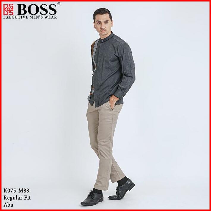 Boss Kemeja Koko Pria Lengan Panjang Regular Fit K075 Abu Tua