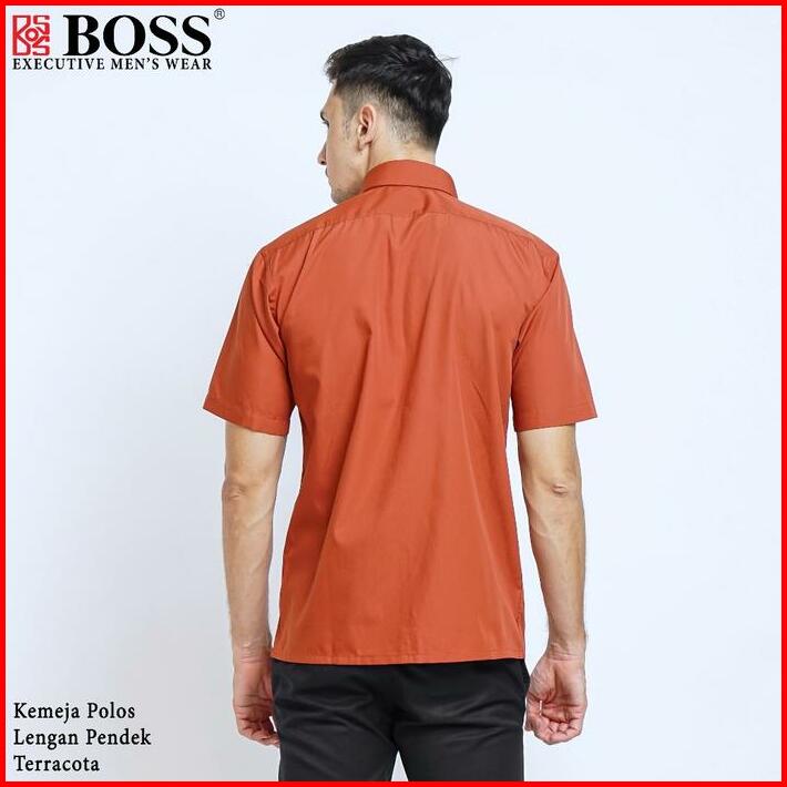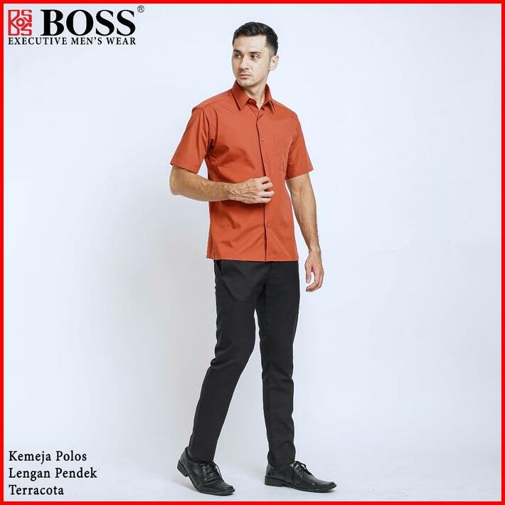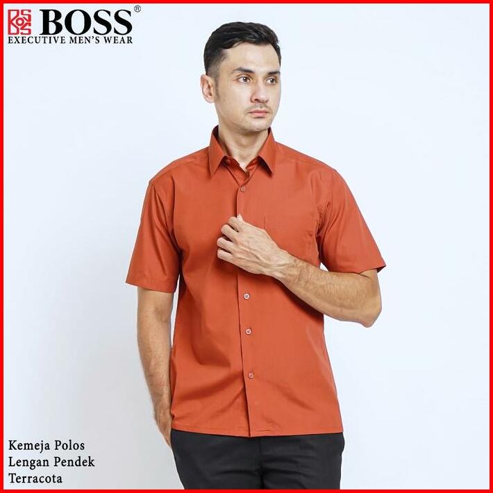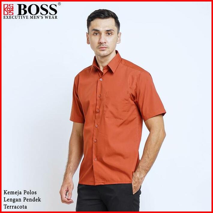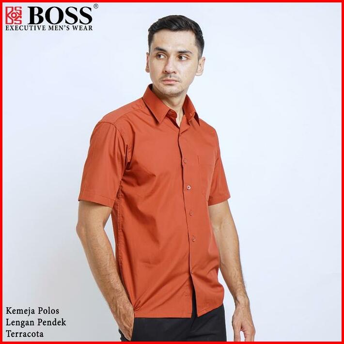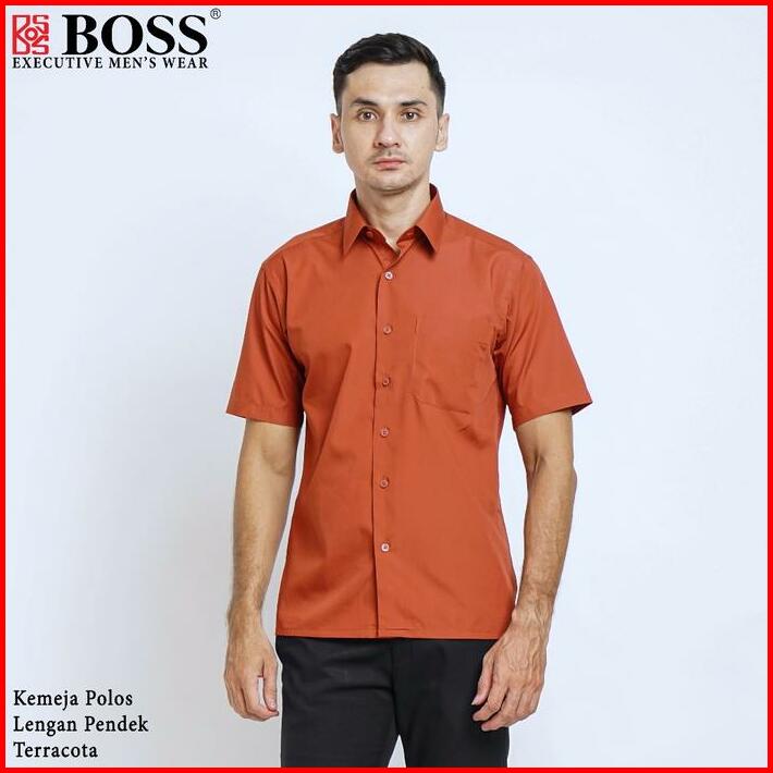 Boss Kemeja Polos Pria Lengan Pendek Regular Fit Coklat Terracota