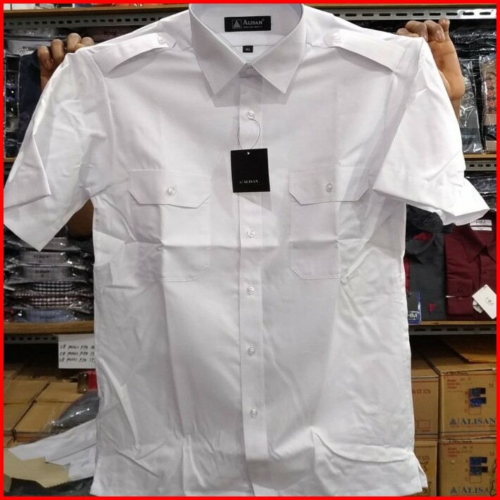 Alisan Kemeja Putih Pangkat Kantong Dua Pendek Pilot Dinas