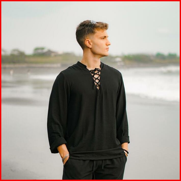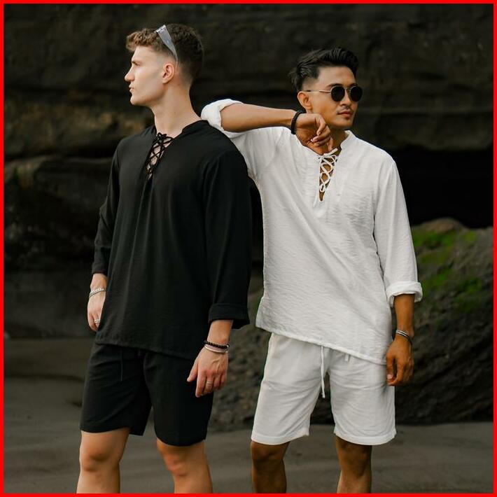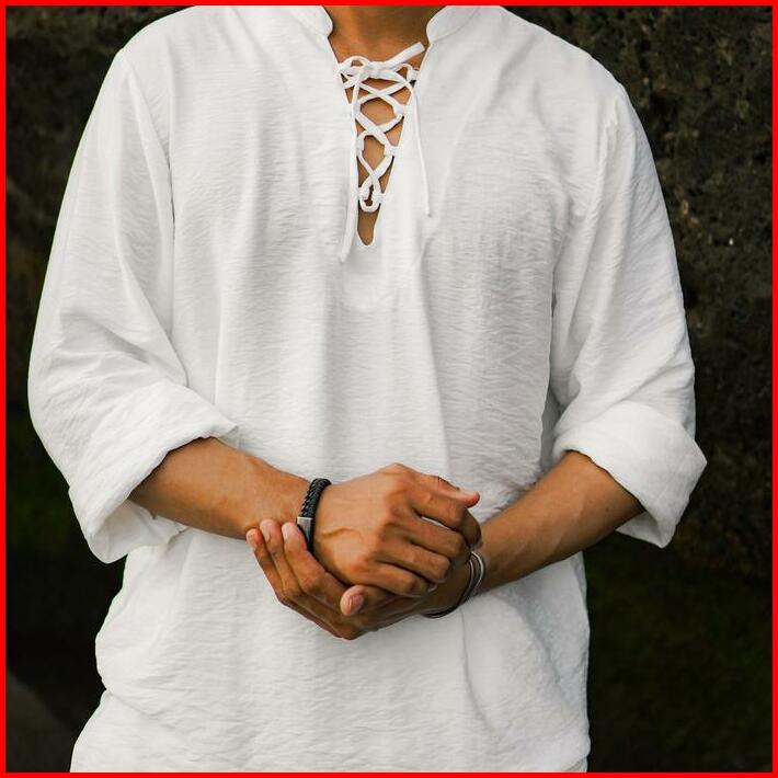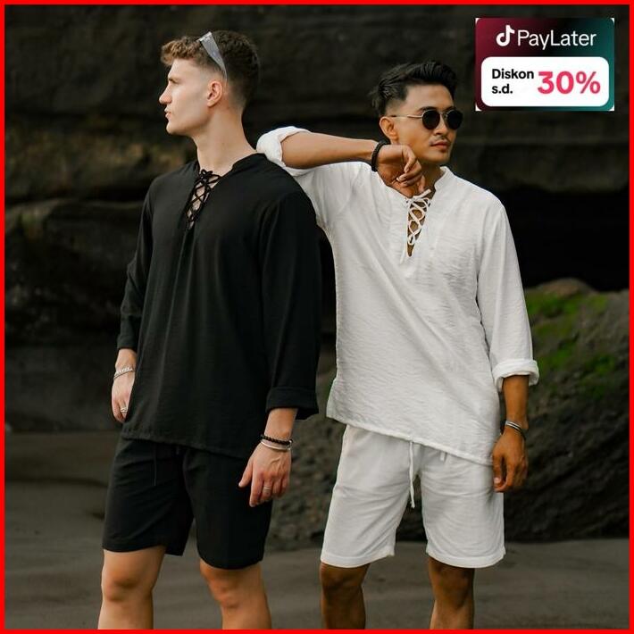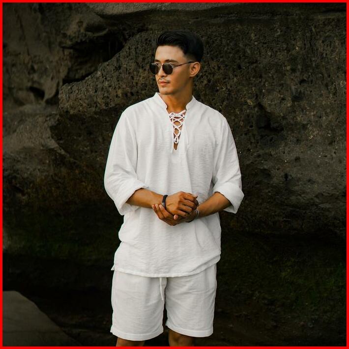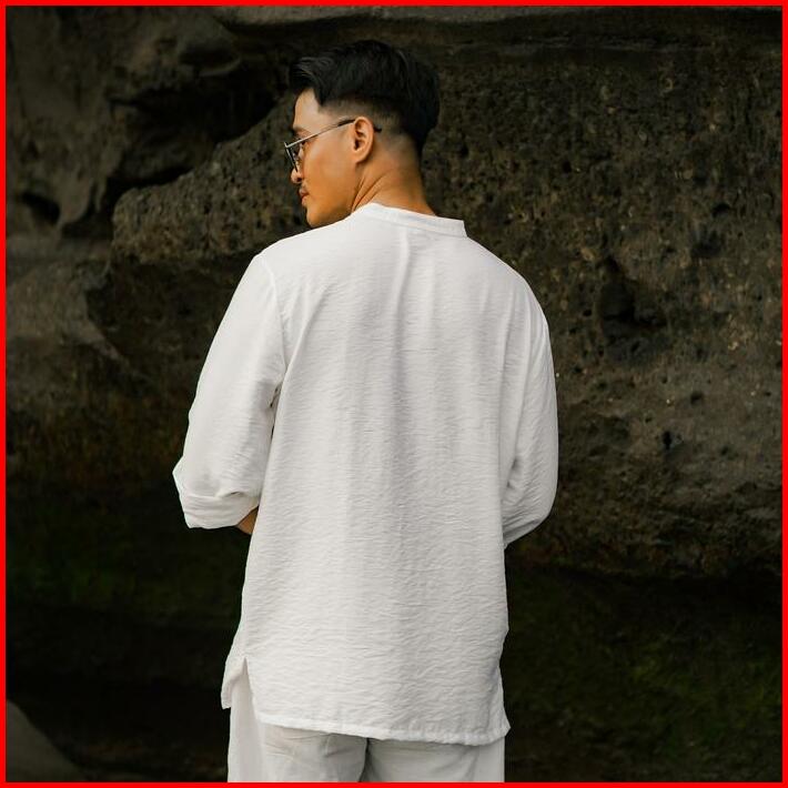 Kemeja Linen Polo Rope Baju Lengan Panjang Baju Pria Kasual Polos Warna Putih Bahan Linen Polo Premium Pantai Warna Puti